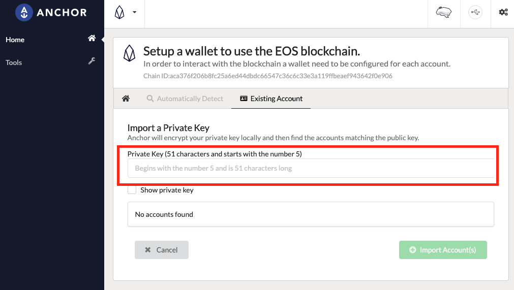 7. 임포트 프라이빗키 버튼을 눌러주세요.